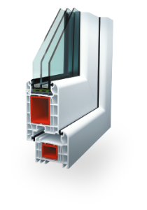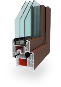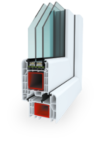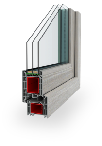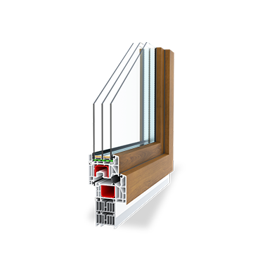 The American profile is a robust six-chamber frame with a depth of 80 mm, providing excellent insulation and allowing glazing units up to 51 mm for superior window performance.